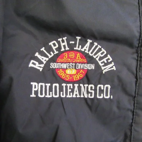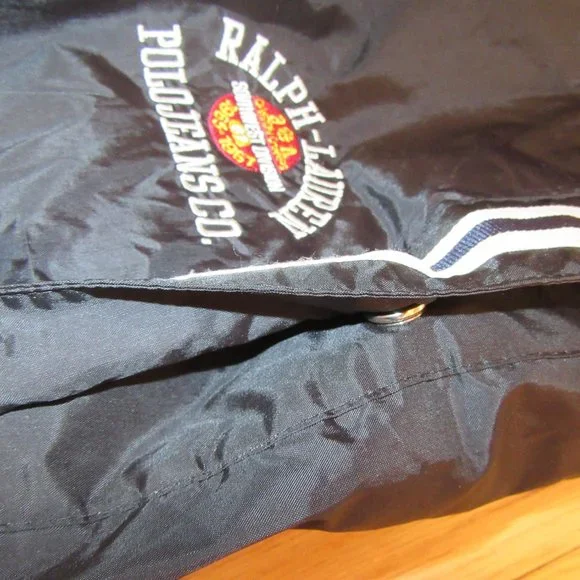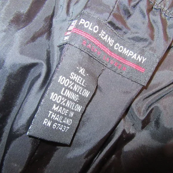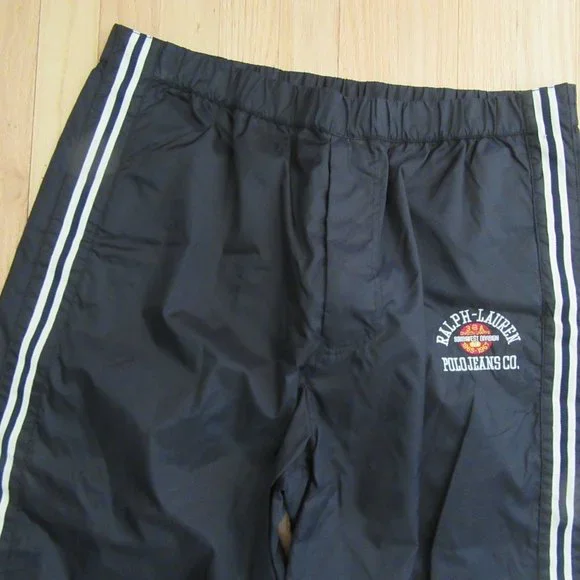 We have a rare pair of vintage Ralph Lauren track pants!Black.White stripes.Snaps down the sides.YKK zipper.Pockets on the back side.Elastic waist.Size extra large and measures 17" across front of waist, 13" from wait to crotch, 30" inseam and leg opening is 10" across.There are no rips, holes, tears or stains.Super nice, rare, vintage pair of Ralph Lauren track pants!We have a smoke free home.Please read the description and view the pictures before purchasing.Thanks so much for stopping by!!**19H**