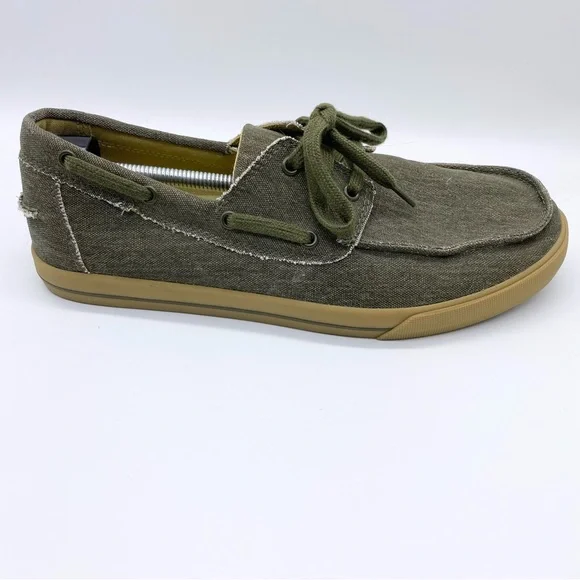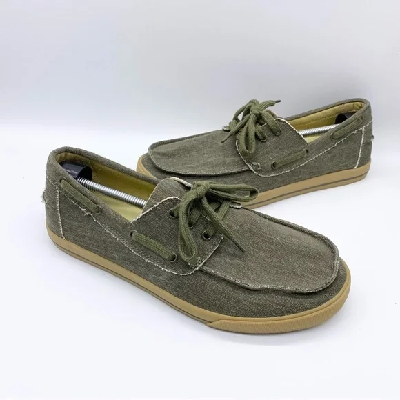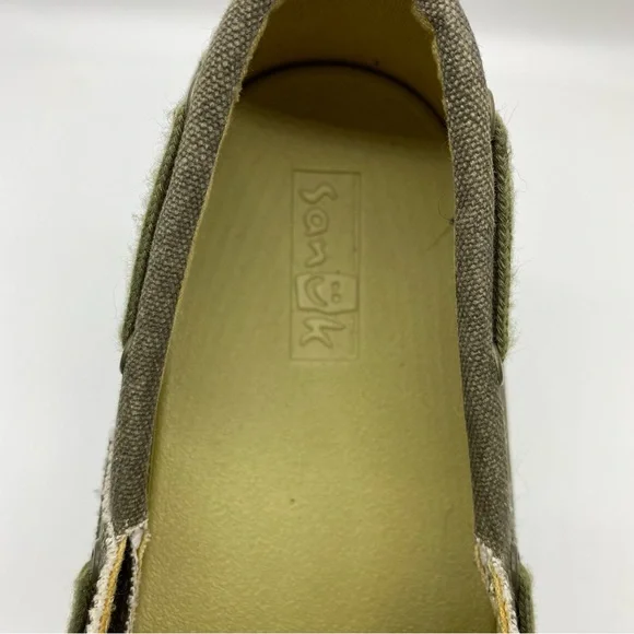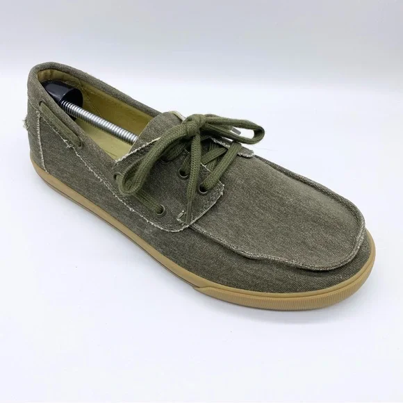 Sanuk-Army Green Loafer Mens 8Gum sole Slip on style Comfort insole Rubber soleGreat preloved Condition