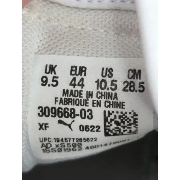 Puma Shuffle Men´s 10.5 sneakers are white and black lace-up low tops. Previously owned, they feature a round toe, flat heel, and slip-resistant rubber sole.• Puma brand• Men´s size 10.5• White and black colorway• Lace-up style• Round toe and flat heel• Slip-resistant• Rubber soleFeatures:• Round Toe, Flat heel, Lace up, Slip ResistantSize: Mens 10.5Condition: Pre-Owned Good