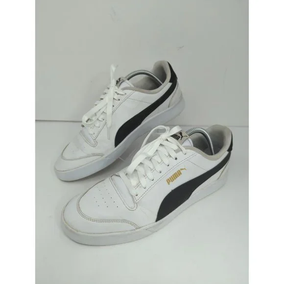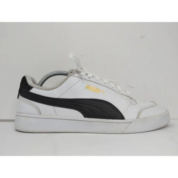 Puma Shuffle Mens 10.5 White Black Lace Up Low Top Sneaker Pre owned