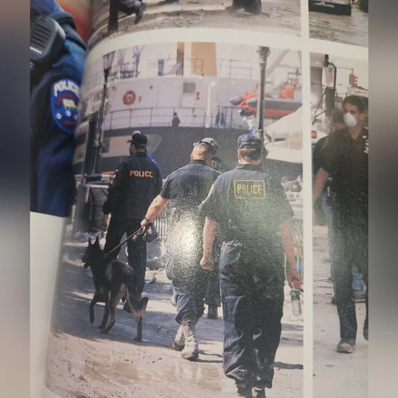 911 DISASTER THAT CHANGED OUR WORLD. THIS PORT AUTHORITY CAP WAS FOUND IN THE DISASTER RUBBLE. GIVEN TO MY HUSBAND, A RETIRED LAPD CAPTAIN, WHEN WE VISITED THE SITE FROM PORT A AUTHORITY OFFICER.IM INCLUDING THE OFFICIAL COFFEE TABLE BOOK I PURCHASED WHEN IT WAS FIRST RELEASED. A COLLECTORS ITEM. CAP HAS NEVER BEEN WORN OR WASHED SINCE. BOOK IS FULLY ILLUSTRATED FROM THE MINUTE THE PLANES HIT THE TOWERS, TO THE HUGE PROJECT OF REBUILDING THE DISASTER. LIFE CHANGING FOR ANYONE WHO WAS ABLE TO ACTUALLY SEE HOW LARGE THE AREA WAS IN PERSON.