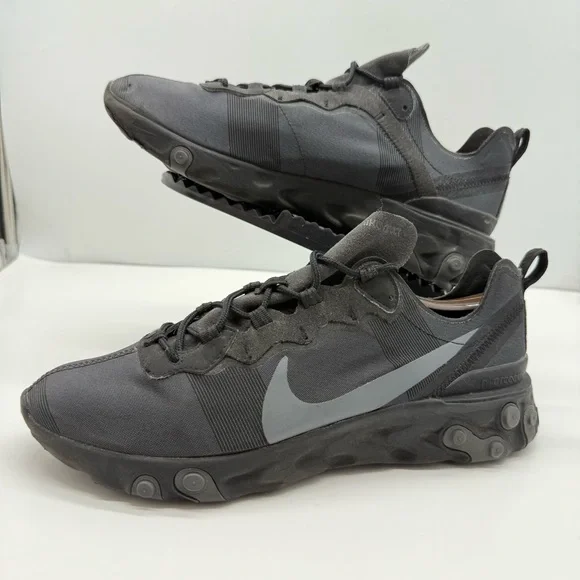 Nike React Element 55 Mens 11 Triple Black Running Shoes Sneakers Low BQ6166-008