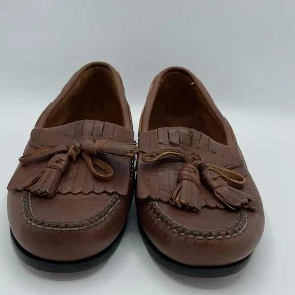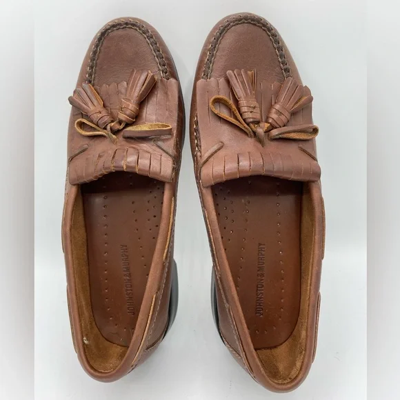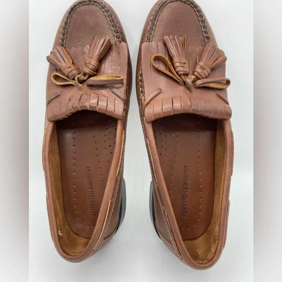 Johnston & Murphy classic brown leather tassel loafers. Perfect for any occasion, these shoes offer both comfort and elegance.Size 8.5. Very good preloved condition. Please review all photos for visual description of condition and wear.Bin 2309