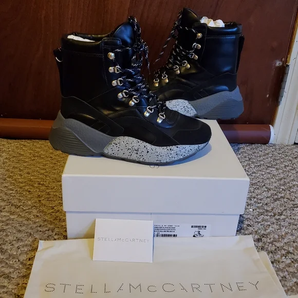 NIB STELLA MCCARTNEY Eclypse Hiking Faux Leather Suede Lace Up Ankle Boots sz 38