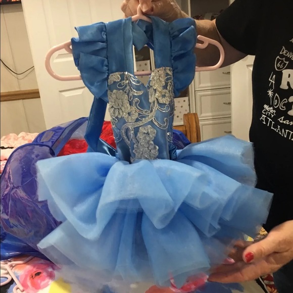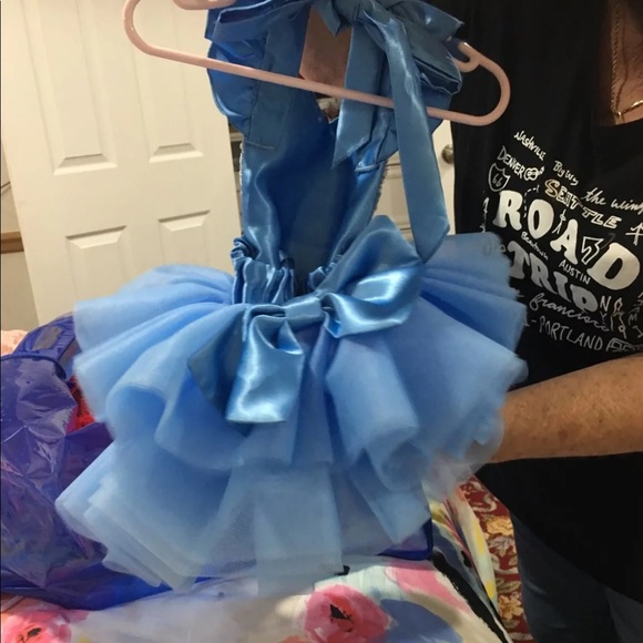 Blue Embellished baby girl romper w detachable tutu worn for a hour like new