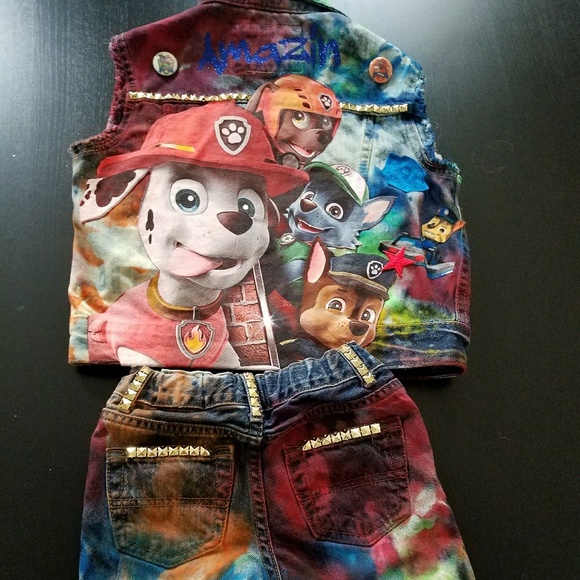 Your child will be the life of the party with a custom paw patrol outfit! This listing is for vest with name and bottoms ONLY. All outfits are made to order. Pleaae check out my face book page solabad creations. This listing is for sizes 5t to size 10 kids