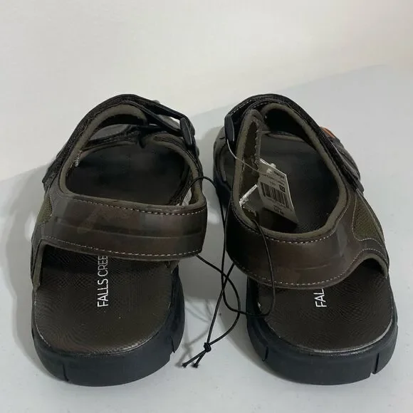 Falls Creek River Camo Sport Sandal, Hiking Sandal Size 10New preowned with tagsDark brown and green color, earth colors