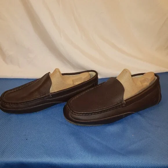 Sperry Topsider Men´s Brown Leather Slippers Size 12M. These luxurious slippers are crafted from genuine leather and feature a plush faux fur lining for ultimate warmth and...