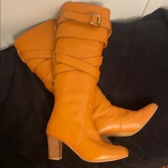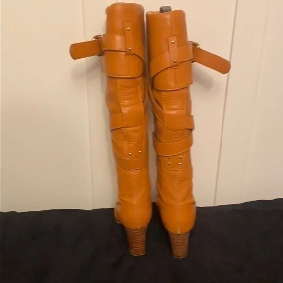 Authentic super hard to find Chloe light brown boots with wraparound strap and authentication buckle size 37 in fantastic condition! 100% leather with wrap around strap and leather lining leather soul leather, built in comfort with Chloe’s added comfort pad. heel height is 3”Total height 19”Ankle diameter 11”Top diameter 14”This is a simple high boot is made in pure Chloe style and made in Italy
