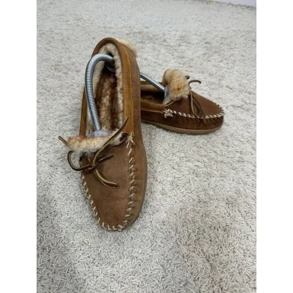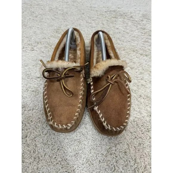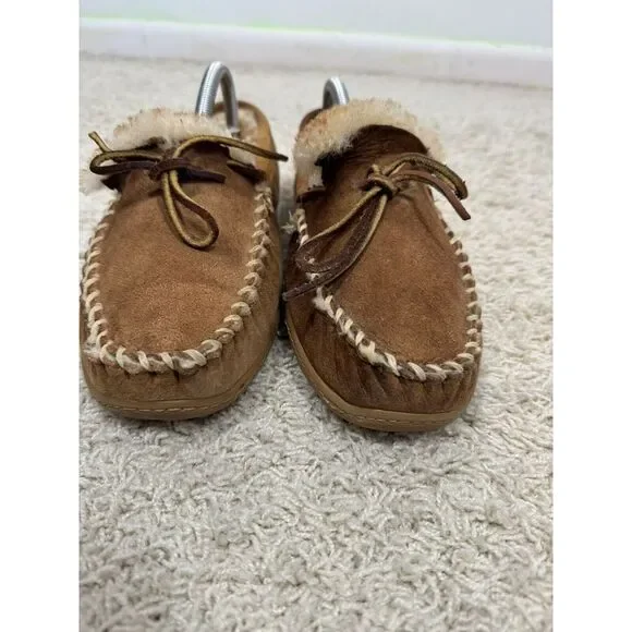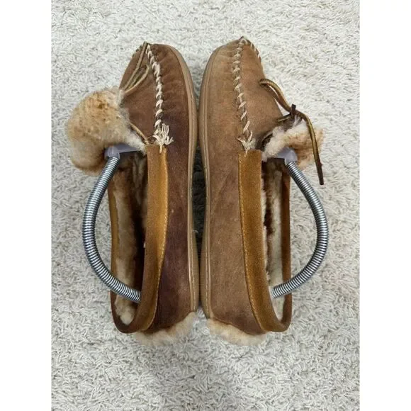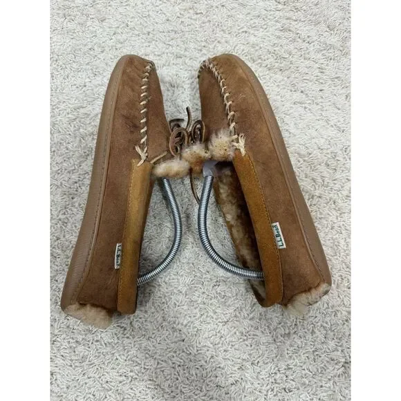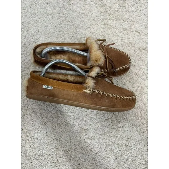 L.L. Bean Men´s Wicked Good Brown Suede Sherpa Lined Moccasins Slippers Size 9