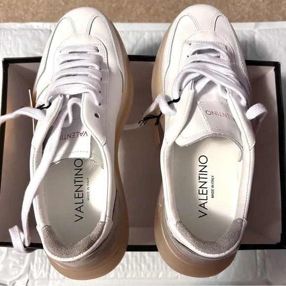 Brand New with tags. Valentinos White Sneakers. Women’s Size 6 U.S. /36.5 IT. Comes with dust bag and original box.