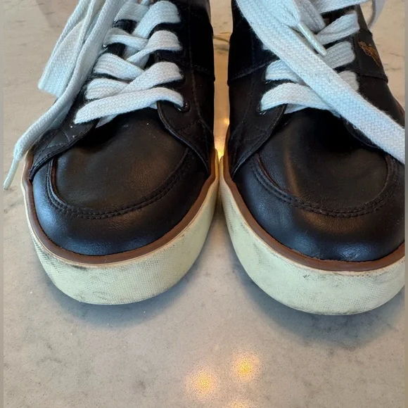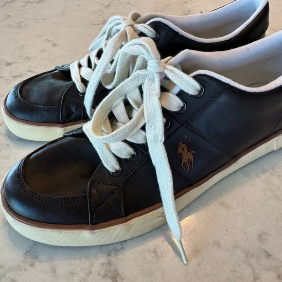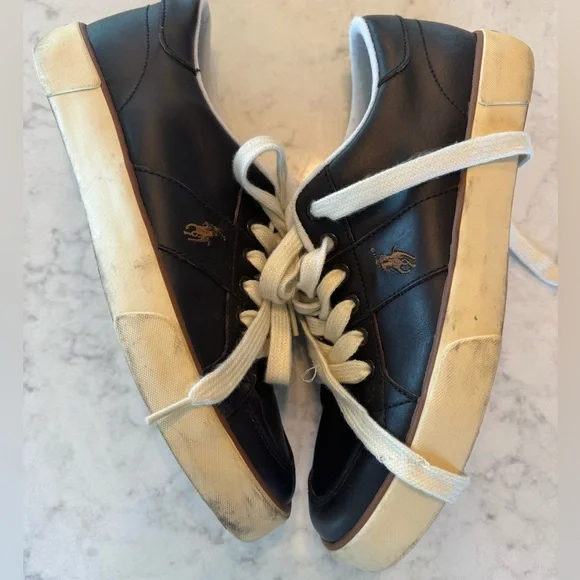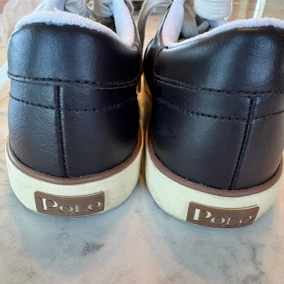 Polo Ralph Lauren Dark Brown Leather Sneakers. White sole, embroidered pony. Size 9.5