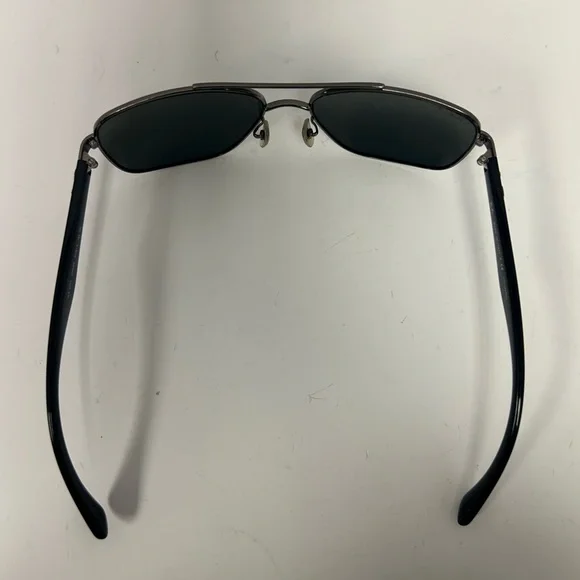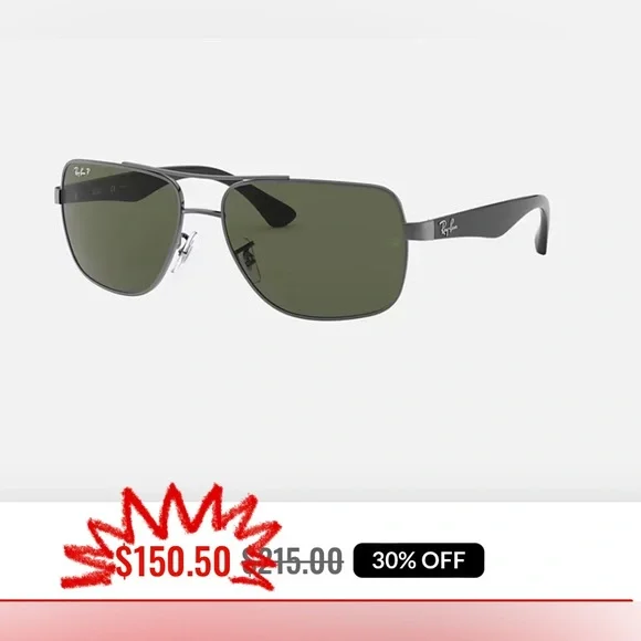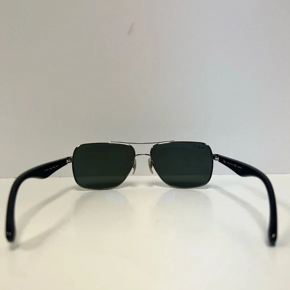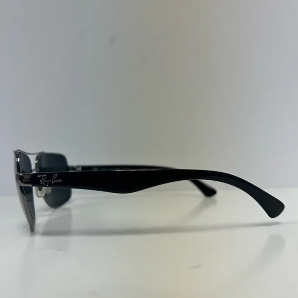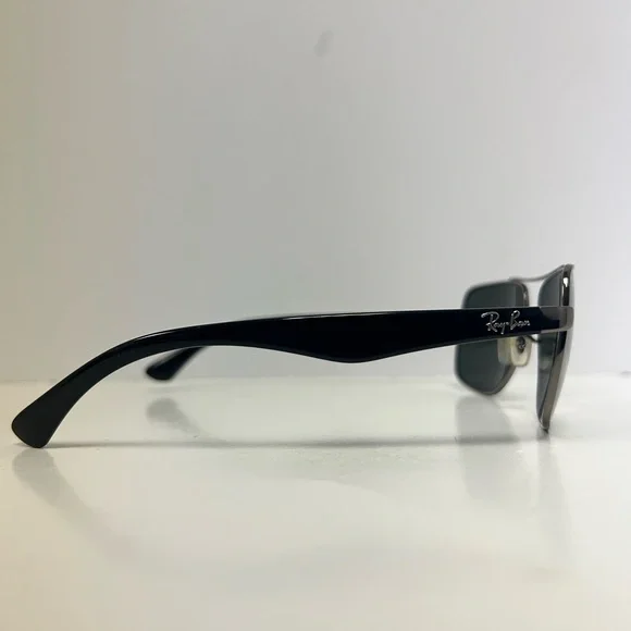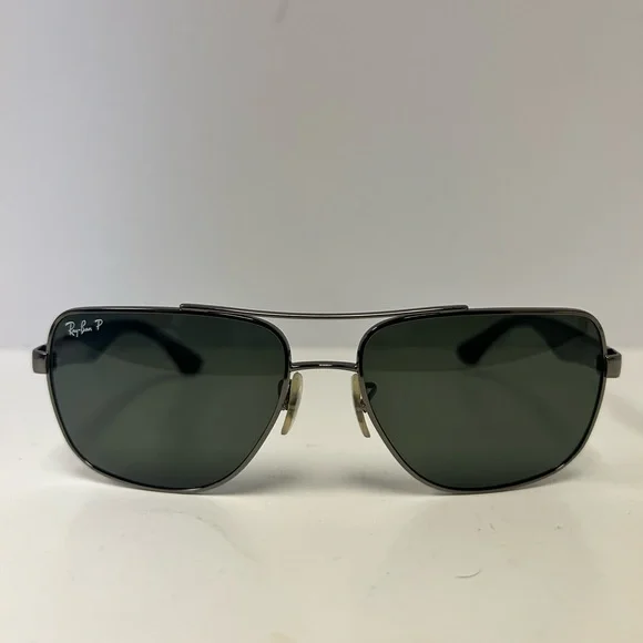 Ray-Ban RB3483 Sunglasses are a distinguished design with a classic metal double brow bar sitting on an oversized squared metal frame. Classic plastic temples create a timeless Ray-Ban look with uncompromisable quality. Decorated with a Ray-Ban signature logo on temples and lens, the adjustable nose pads provide you with a comfortable and customized fitMODEL CODE RB3483 004/58 60-16FRAME DESCRIPTIONFRAME SHAPESquareFRAME COLORMatte GunmetalFRAME MATERIALMetalTEMPLE COLORBlackLENS INFOLENSES COLORGreenTREATMENTClassicPRODUCT DIMENSIONSHINGE TO HINGE136mmLENS HEIGHT45.2mmBRIDGE WIDTH60 16mmTEMPLE LENGTH140mmFITTINGFITTINGRegularBRIDGE & NOSEPADSAdjustable Nose PadsCondition is gently usedTwo small lines on left lens shown in photosCase included