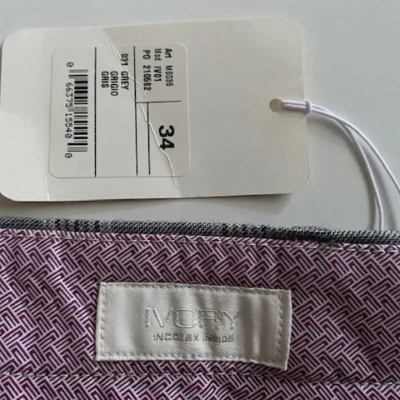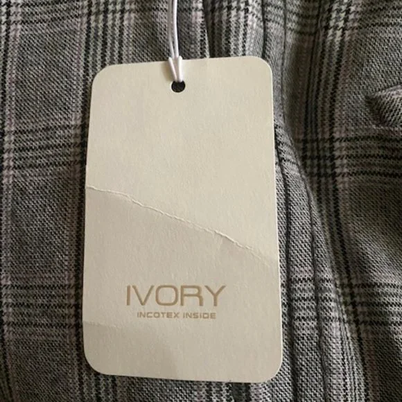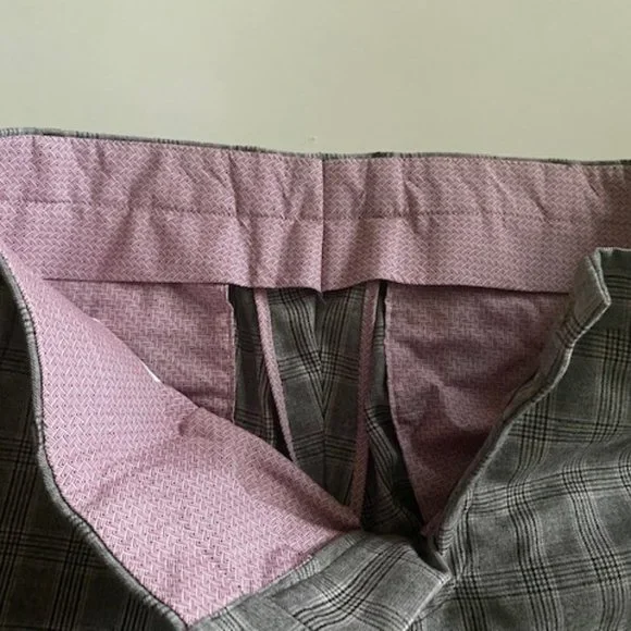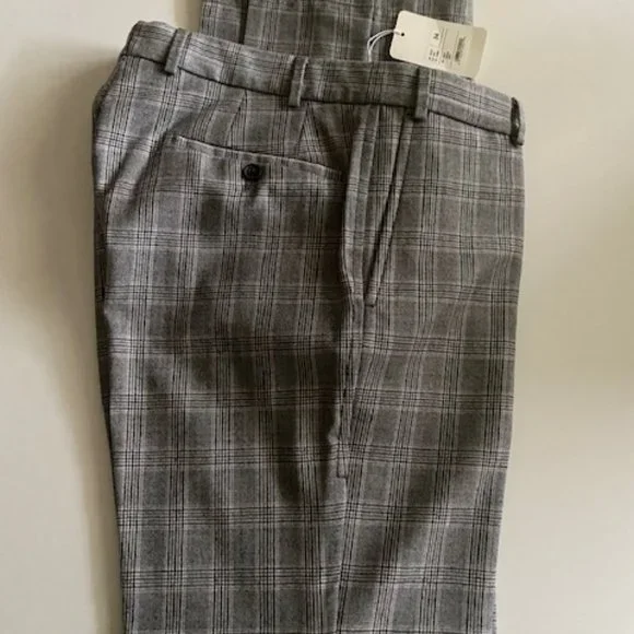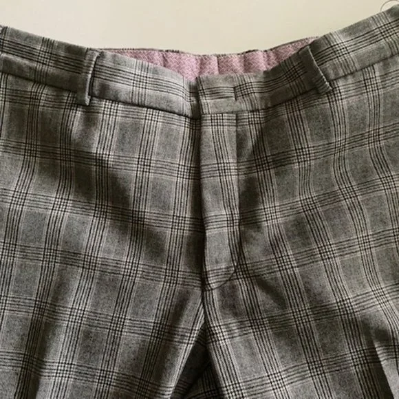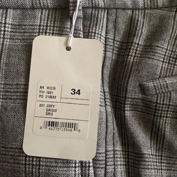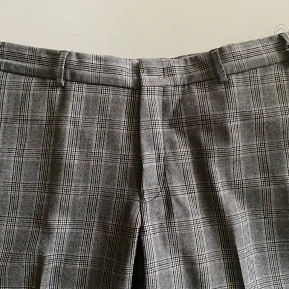 Part of the Italian ´Slowear´ group, Incotex puts a lot of time and care into its collections. These trousers are cut from virgin wool and made in Canada. The beautifulgray plaid pattern with a muted , hint of brownish and plum stripesensures you´ll return to them often. Perfect with a wool blazer for a more dressier look or with a cardigan for a more casual look.They are size 34 with an hemmed inseam of 35.