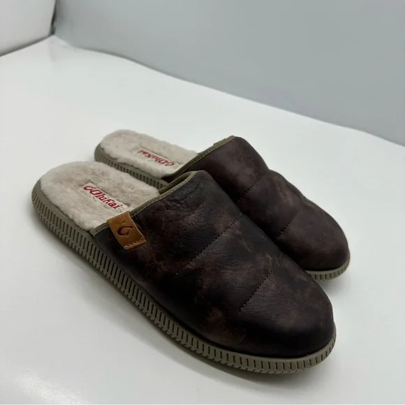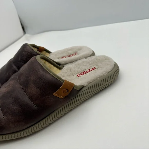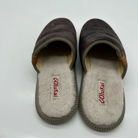 Olukai Mua ‘ILI Mens 7 Slippers Slip On Shoes Casual Comfort Sherpa Lined Loafer