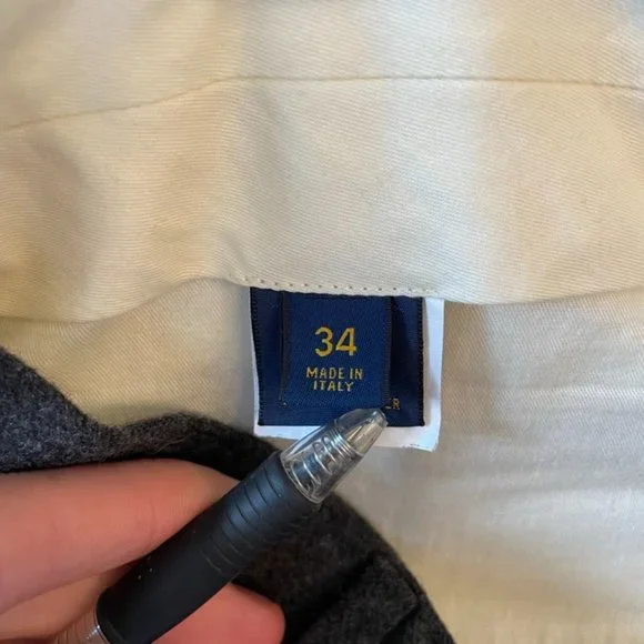 Polo Ralph Lauren Wool Slacks Blue Label NEWWool Grey dress slacks with silk lining 3/4 down the front of the legs.Condition: new never worn without tagsMeasurementsWaist: 34Inseam: 28