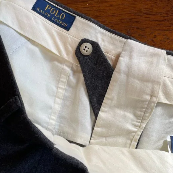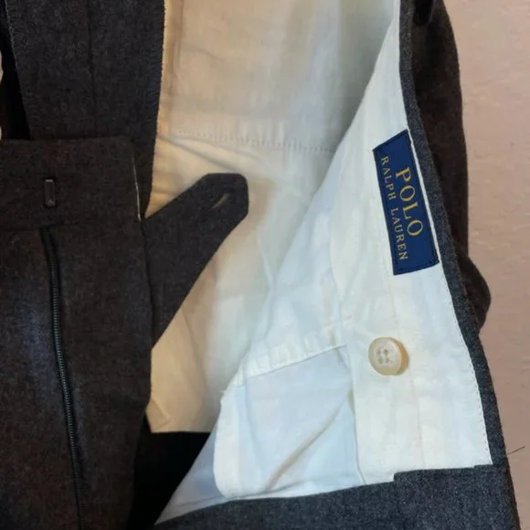Polo Ralph Lauren Wool Slacks Blue Label NEWWool Grey dress slacks with silk lining 3/4 down the front of the legs.Condition: new never worn without tagsMeasurementsWaist:...