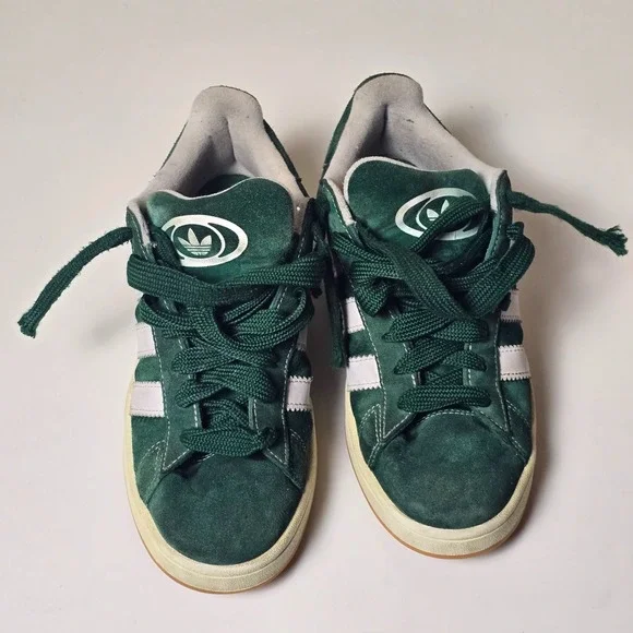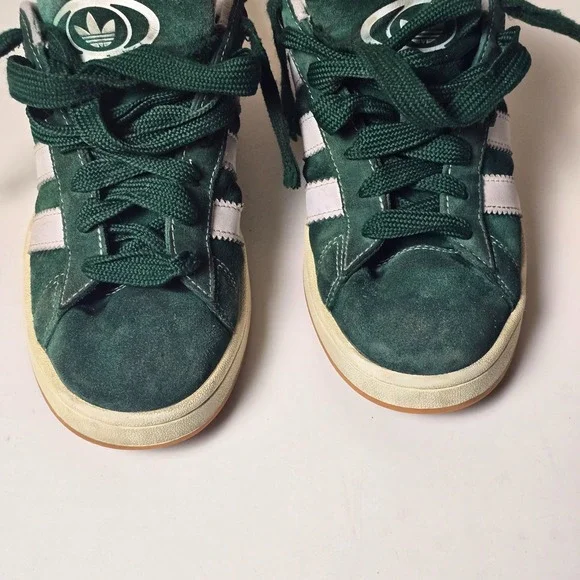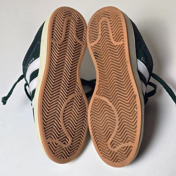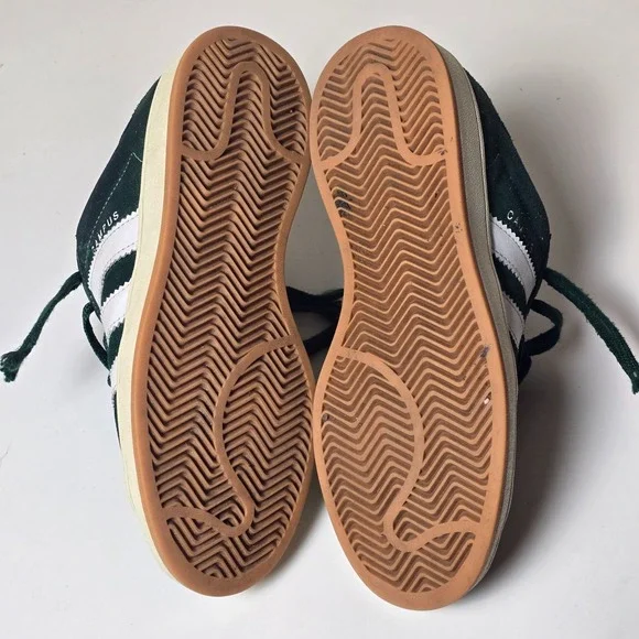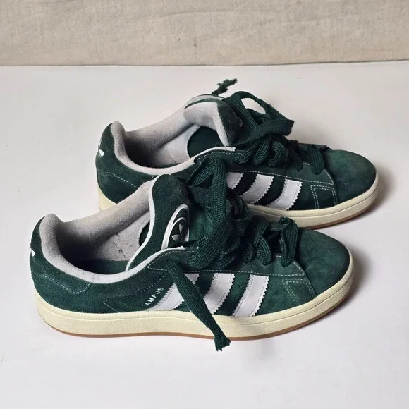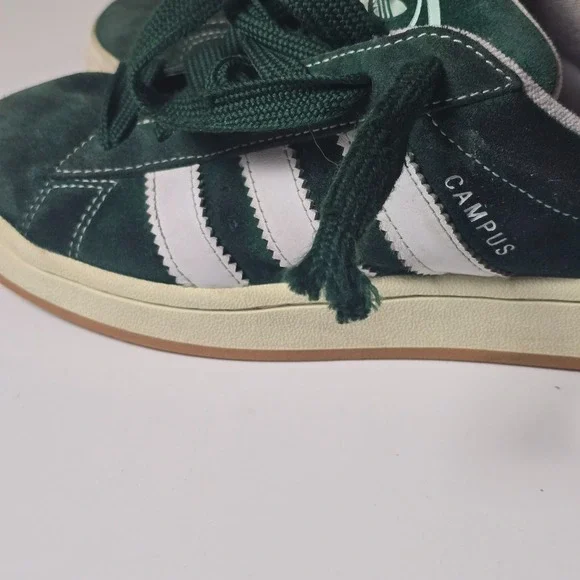 In wear condition suedeand laces have flaws please review all pictures. The Adidas Campus 00s Men´s Sneakers in dark green, size 8.5, with suede upper material are perfect...
