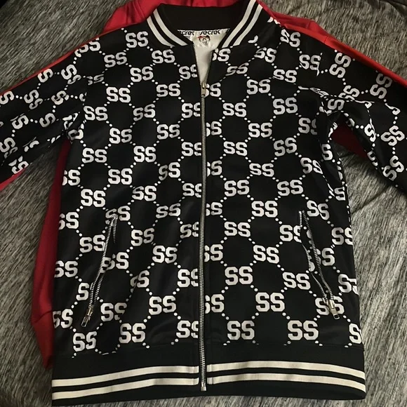 Brand secret scientist its a set top and bottom I have a red designed lucky charm hoodie its nice