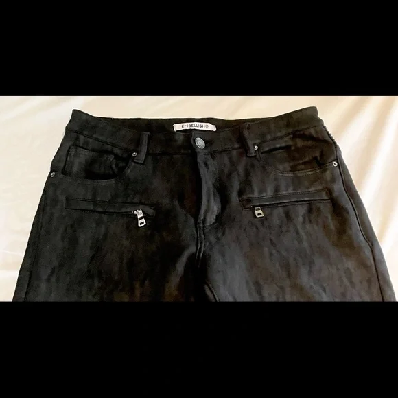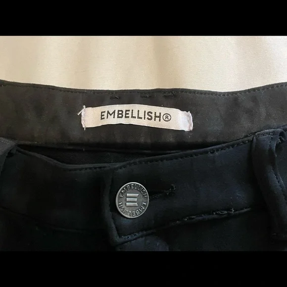 Worn 3 times.Absolutely flawless.Stretchy and felted fabric.Amazing feel and fit.***Unlike any EMBELLISH clothing I’ve worn!!! ⭐️⭐️⭐️⭐️⭐️
