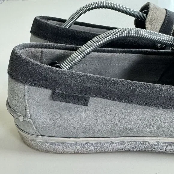 Cole Haan Grand OS Men´s Pinch Weekender Penny Loafer Shoes Gray Blue Suede 12M Maine Classics.Stained area at inner section of left shoe and some signs of wear on the...
