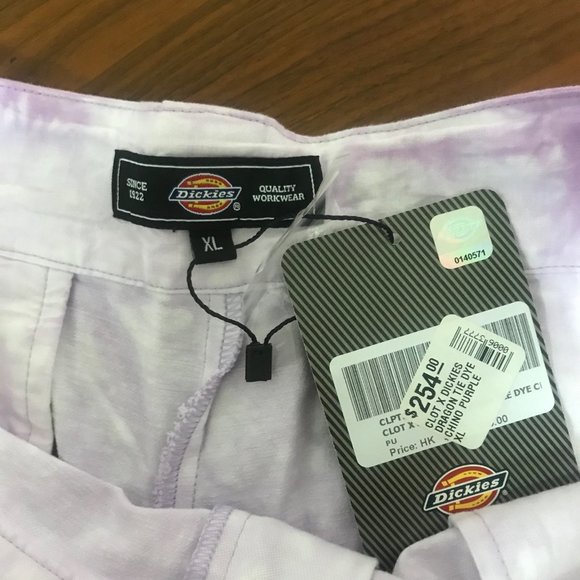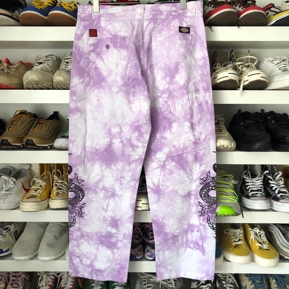CLOT x DICKIES Dragon Tie-Dye Chino Pantnew with tags!!Size: Xlarge (Waist: 33, see measurements)Color: PurpleRetail: $240 USD- Mid-rise Silhouette- Tie dye design- Zip fly with hook-bar top closure- Front slash pockets- Material: 100% Cotton CanvasMeasurments:Waist - 16.5 in / 41.9 cmInseam -29 in / 73.7 cmLeg Opening - 8.5 in / 21.6 cmFront Rise - 11 in / 27.9 cm100% Authentic