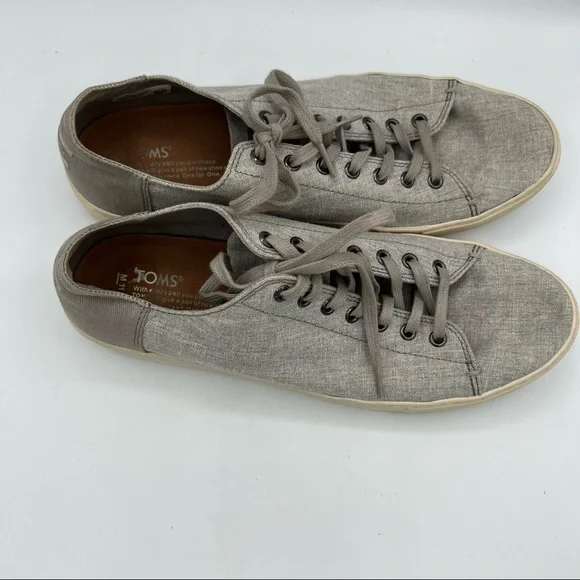 Tom´s Men´s Sneakers 11.5 Lenox Chambray Gray Canvas Lace Up Shoes GUC 10011017Gentle preowned condition; please see all photos.