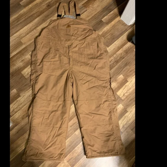 NWOTFlame Resistant khaki bib overallsSize 3XLThese was only wore once! Been stored in a container so they are wrinkly Pet and Smoke free home!Please ask any questions and see all pictures