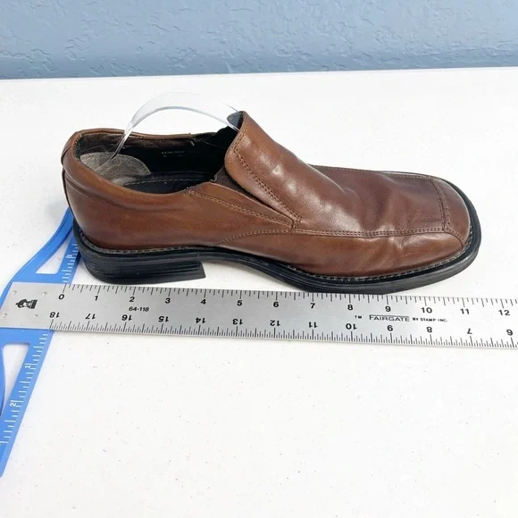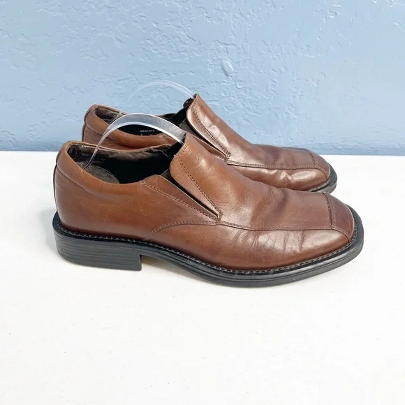 ALFANI Men Size 8M Musician Leather Brown Loafers Made In Italy. In great used condition. Very minor signs of wear. Square toe with a nice walking heal. Perfect for the office or...