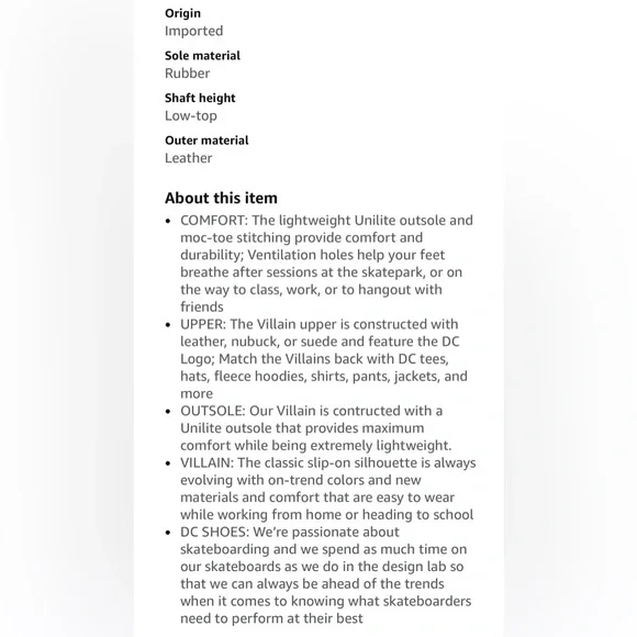 DC mens Villain Casual Slip on Skate Shoe, WhiteSize 10Original $65• Low profile• leather uppers • Supportive padded collars • rubber outsolesSpecial features include:...