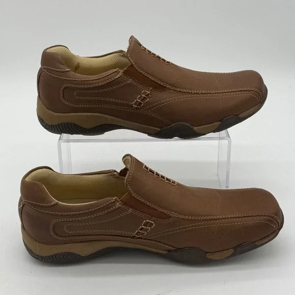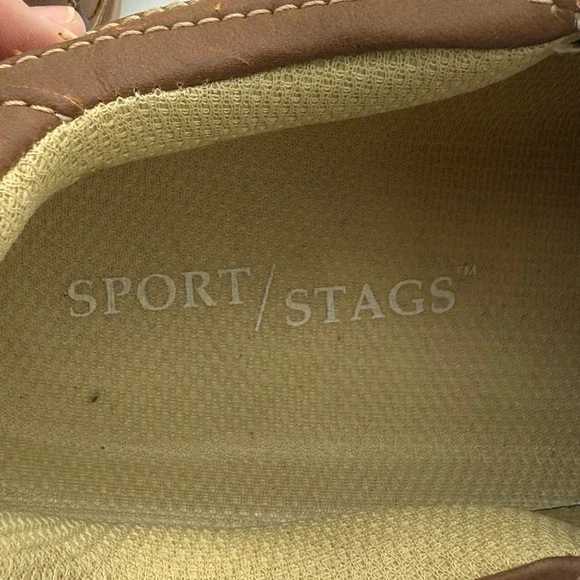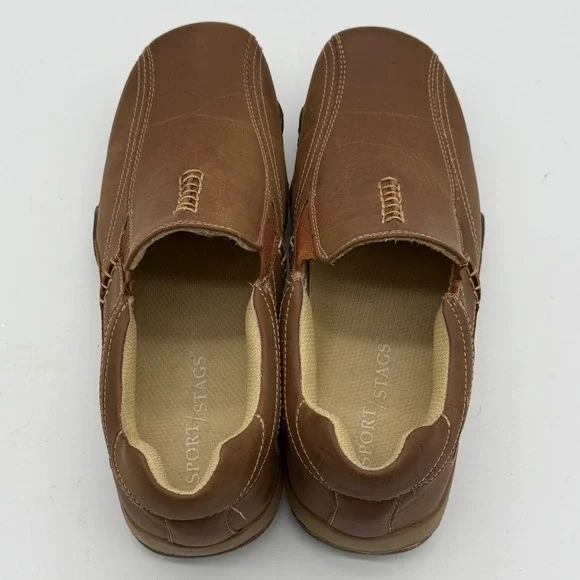 Effortless style meets all-day comfort in these Sport Stags Alloy slip-on loafers. Imagine the feeling of supple, simulated leather gently embracing your feet as you slide into these handsome brown shoes. The meticulously stitched detailing adds a touch of understated elegance, while the cleverly designed sole provides reliable traction and support. These loafers are perfect for a relaxed weekend brunch, a casual office setting, or a comfortable evening stroll.These shows are preowned and do have some slight creasing at the toe bendDepartment: MenStyle: LoaferColor: BrownUpper Material: Faux LeatherPattern: SolidFeatures: Comfort, Cushioned, Slip Resistant, PaddedLining Material: SyntheticInsole Material: FoamOutsole Material: RubberClosure: Slip OnType: CasualModel: Sport Stags AlloyKeywords: Sport Stags, Alloy, loafers, slip on shoes, casual shoes, comfort shoes, mens shoes, brown shoes, size 10M, mens loafers, slip on loafers, walking shoes, comfort loafers, everyday shoesThank you for your interest in our item. We ship quickly in just 1 business day!