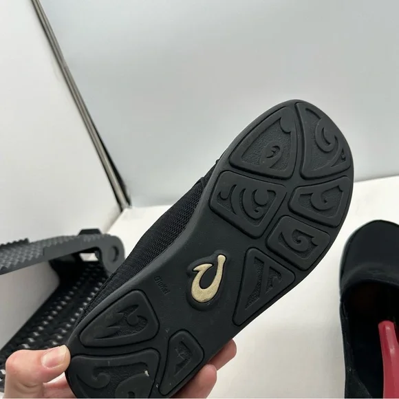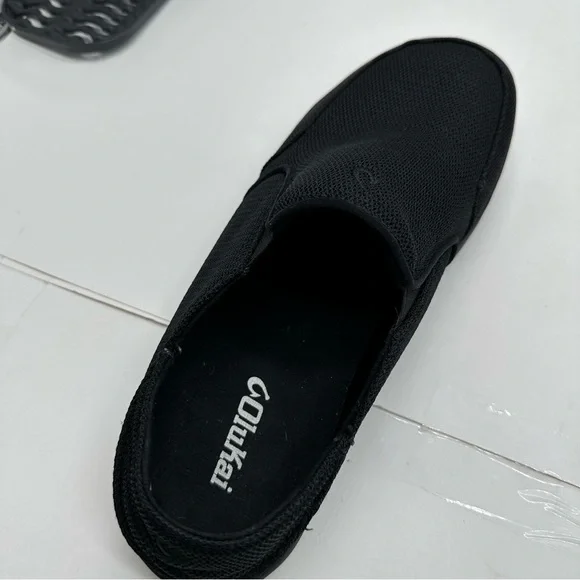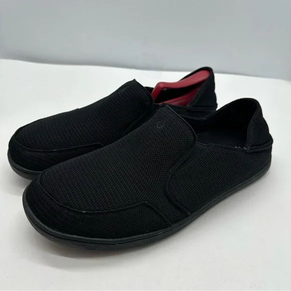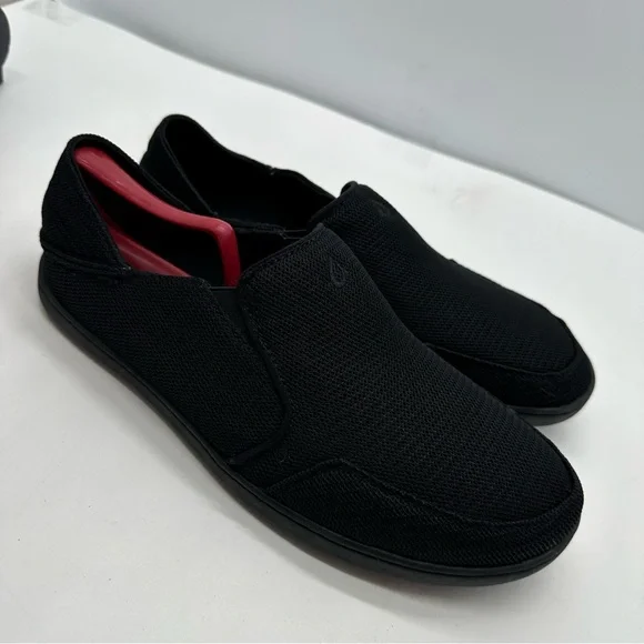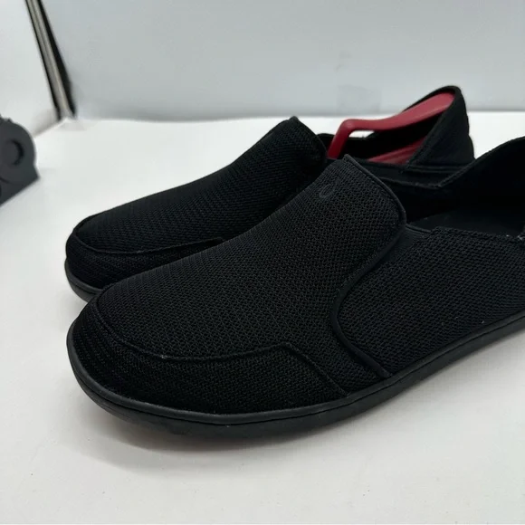 Olukai Nohea Mesh Mens 10 Triple Black Slip On Shoes Loafers Boat Casual Comfort