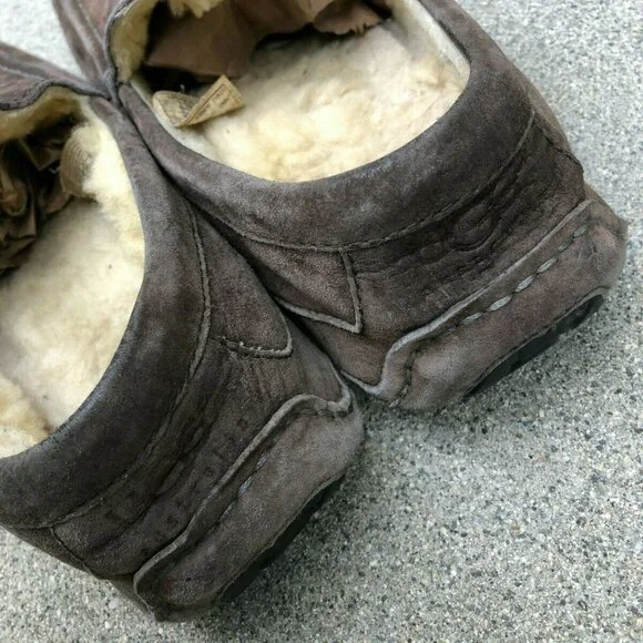 UGG AUSTRALIA Mens 12 Ascot Brown Sheepskin Sherpa Moccasins Slippers Shoes 5775