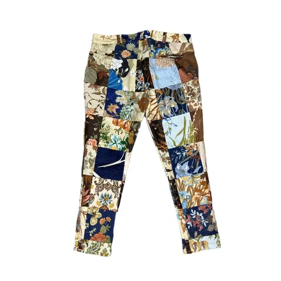 90s XL PatchWork Pants Quilted Floral Custom Trousers VTG