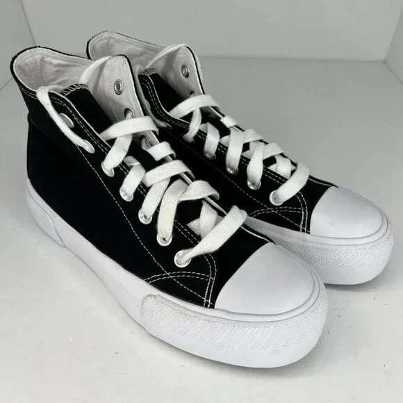 Elevate your casual shoe game with these black high top canvas lace-up sneakers from No Boundaries. Designed for men, these sneakers feature a round toe shape, lace-up closure, and a solid pattern. The upper material is made of synthetic while the lining material is canvas, providing comfort and durability for long-term wear.The sneakers come in size 7, with a UK shoe size of 6.5 and an EU shoe size of 39. The outsole is made of rubber, making it slip-resistant and perfect for summer, fall, and spring. The foam insole provides added comfort and support, making these sneakers ideal for casual wear. Get your hands on these stylish sneakers from No Boundaries today!100% CUSTOMER SATISFACTION IS OUR GOAL!Our items are always carefully examined for condition, measured if necessary, and photographed in a climate controlled and smoke-free environment. We make every attempt to accurately describe and clearly picture the items we have for sale. Please, ALWAYS view all of the photos. We value your business and our goal is your complete satisfaction.FAST SHIPPINGAll items are packaged with care and shipped out the same or next business day via USPS, FEDEX, or UPS with tracking numbers so you are always informed.