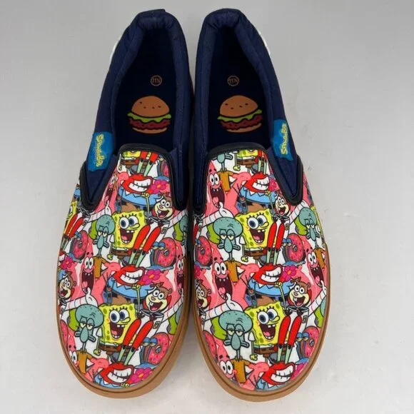 Elevate your casual look with these slip-on shoes from Ground Up. Featuring a blue canvas upper with a Spongebob SquarePants design, these shoes are perfect for any fan of the classic cartoon. The round toe and rubber outsole provide comfort and durability, making them suitable for summer, fall, and spring.These shoes are available in UK size 11, US size 11.5, and EU size 45. The insole is made of fabric and the lining is also canvas, ensuring a comfortable fit. The shoes are part of the men´s casual collection and are perfect for any occasion. Add these Spongebob SquarePants slip-on shoes to your wardrobe today!100% CUSTOMER SATISFACTION IS OUR GOAL!Our items are always carefully examined for condition, measured if necessary, and photographed in a climate controlled and smoke-free environment. We make every attempt to accurately describe and clearly picture the items we have for sale. Please, ALWAYS view all of the photos. We value your business and our goal is your complete satisfaction.FAST SHIPPINGAll items are packaged with care and shipped out the same or next business day via USPS, FEDEX, or UPS with tracking numbers so you are always informed.