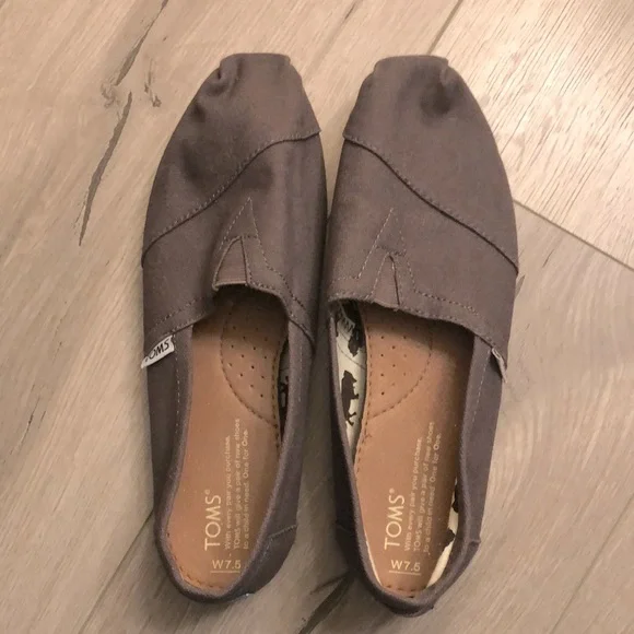 Super trendy and comfortable medium gray colored Tom’s canvas shoesThese shoes are known for padded footbed and supporting healthy foot posture, you can walk in these all day!Very versatile these go great with shorts, skinny jeans, pants, skirts!Great for year-round wear due to the color, matches with any outfitSuper comfortable cushioned footbedSlip on style for easy on and offLabeled 7 1/2 WExcellent conditionralph lauren polo nordstrom michael kors kork ease white mountain ann taylor loft white house black market bebe betsey johnson ivanka trump cece gap express old navy francescas forever 21 maeve lucky brand free people banana republic J crew limited zara bohemian boho dkny merona urban outfitters charlotte russe lauren conrad candies kohls Lulu’s macys sam edelman coach dsw clarks naturalizer born life stride marc fisher kenneth cole giani bernini BCBG journee b.o.c. steve madden madden girl