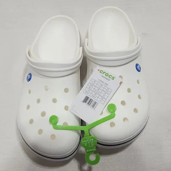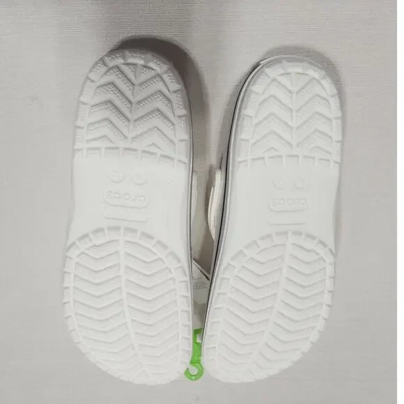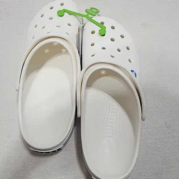 New with original tags. size 12 white clog with blue stripe. Great condition, no marks or damage.