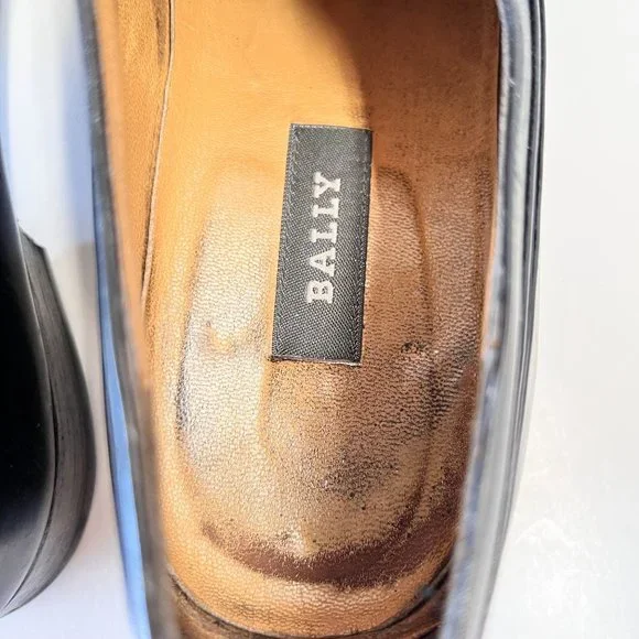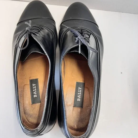 Bally Cagney Oxford dress black shoes, cap to toe designer size 10.5some used on insole see pics please. leather,made in italy