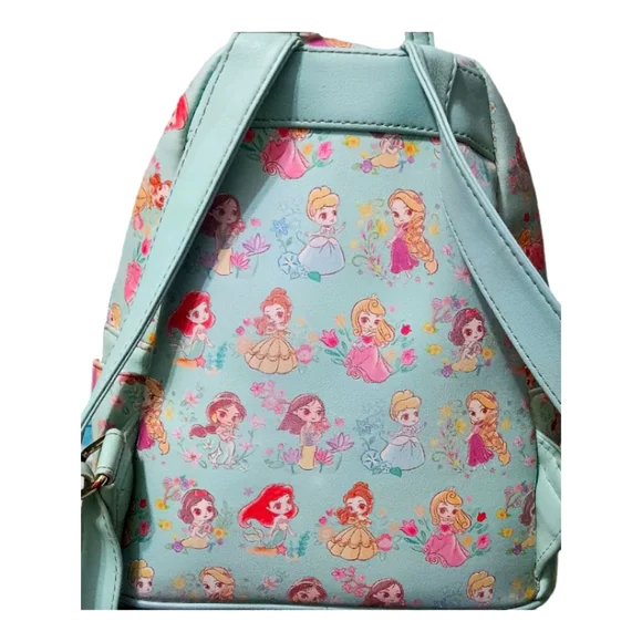 Girls size 8 dress/shoes, unicorn toy and towel, princess backpack/book,rain ski
