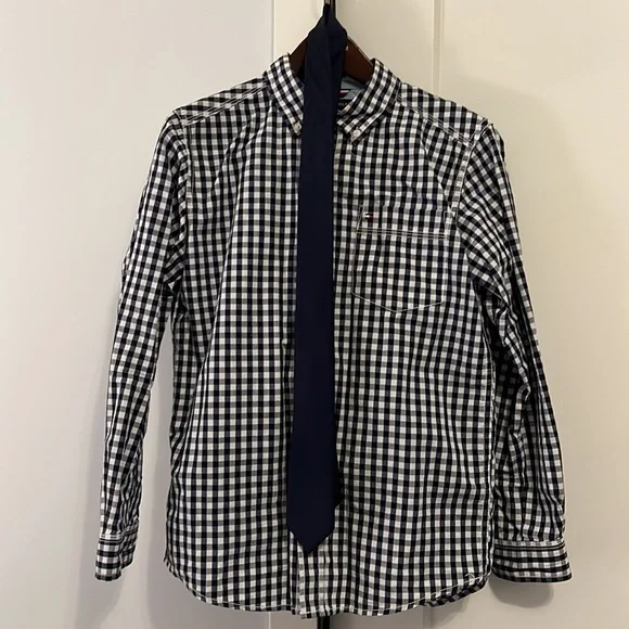 Navy Nordstrom Kid suit with tie, Navy gingham shirt, Nautica beltWorn 1 time