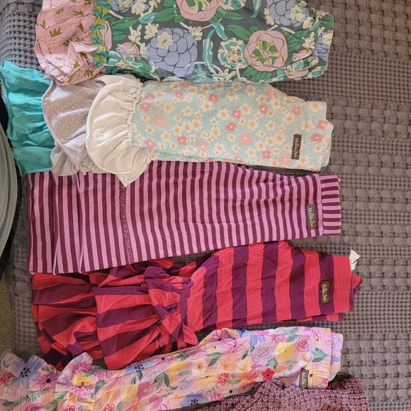 This gently used lot of Matilda Jane is a score for you. my daughter had grown out and I wasn´t them to find a new home! all size 4t (there might be one 3T that we used into the next season.1 adorable Matilda Jane jacket (that I wish they made in adult size)3 sweet dresses1 very warm hooded sweater2 long sleeve smock shirts1 tank top6 pairs of ruffle pants + a couple bonus pieces!$125 OBO