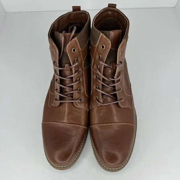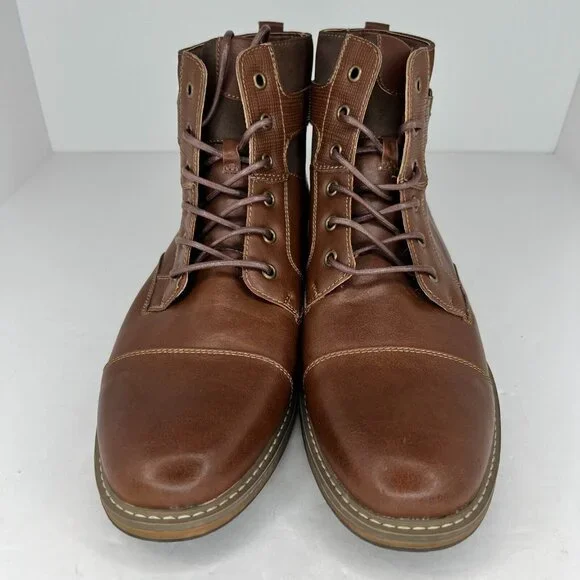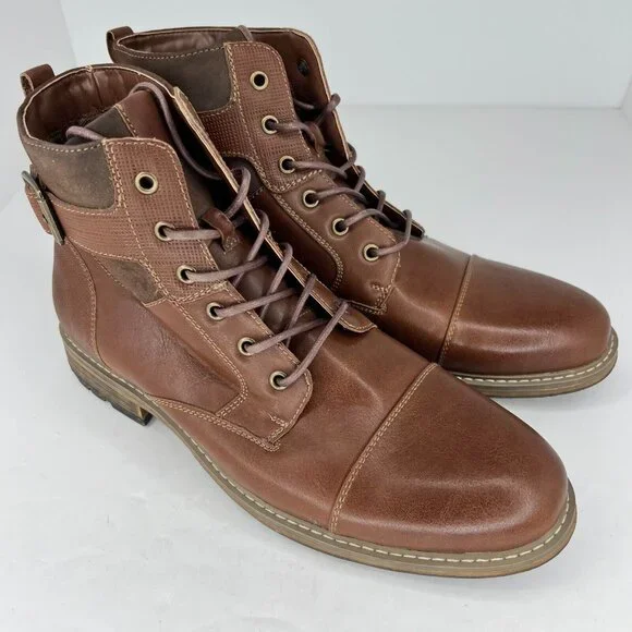 Elevate your style with these Arizona Jeans Co combat boots. Featuring a solid brown color and almond toe shape, these lace-up ankle boots are perfect for any occasion. The faux leather upper material and leather lining material provide durability and comfort, while the rubber outsole ensures a secure grip.With a UK shoe size of 10.5 and a US shoe size of 11, these boots are designed for men who appreciate quality footwear. The combat style and leather insole material make them perfect for summer, fall, and spring seasons. Don´t miss out on the opportunity to add these stylish boots to your wardrobe.100% CUSTOMER SATISFACTION IS OUR GOAL!Our items are always carefully examined for condition, measured if necessary, and photographed in a climate controlled and smoke-free environment. We make every attempt to accurately describe and clearly picture the items we have for sale. Please, ALWAYS view all of the photos. We value your business and our goal is your complete satisfaction.FAST SHIPPINGAll items are packaged with care and shipped out the same or next business day via USPS, FEDEX, or UPS with tracking numbers so you are always informed.