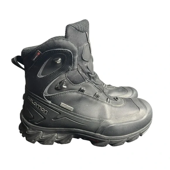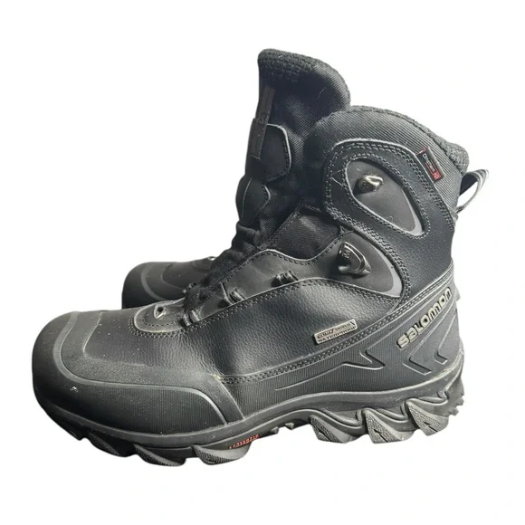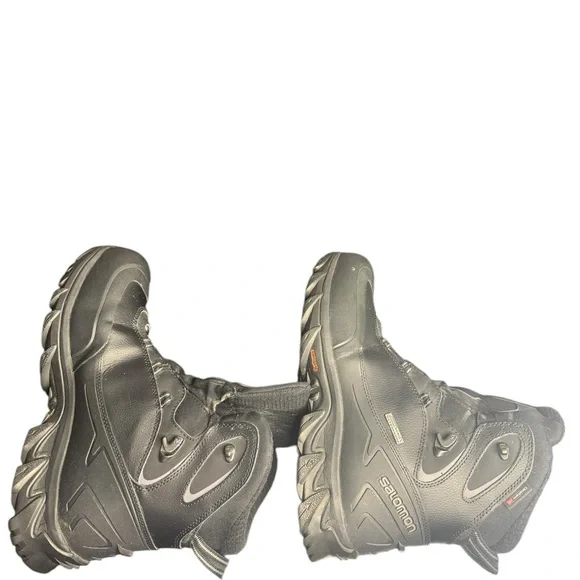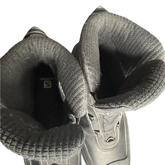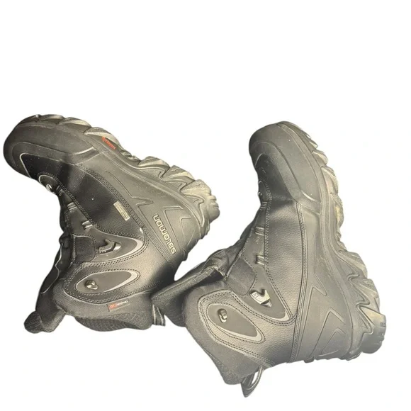 Salomon Mens Anka Clima Shield Waterproof Hiking Snow Boots Black LeatherNo shoe laces includedPreowned condition Scuffs around bootsSmoke and pet free home Box 148