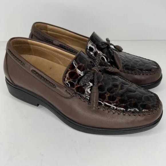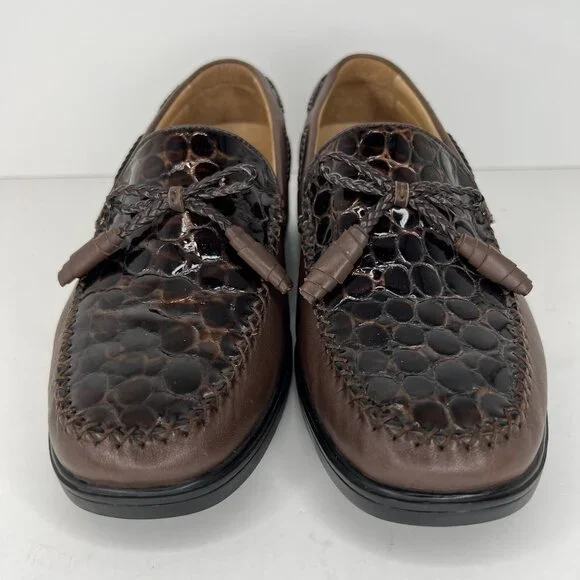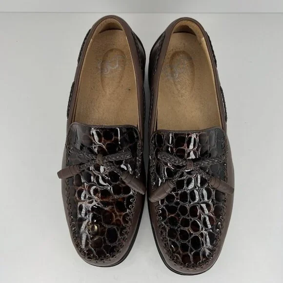 Step out in style with these elegant, crocodile pattern patent leather shoes from Gravity Defyer. Featuring a comfortable foam insole and slip-on closure, these oxfords are perfect for any casual occasion. The round toe shape and standard shoe width complement the stylish brown color, making them a great addition to any outfit.Crafted for all seasons, these shoes are designed to provide maximum comfort with a rubber outsole and exquisite patent leather upper material. Available in size 8, these Gravity Defyer shoes promise a classy and sophisticated look without compromising on comfort.100% CUSTOMER SATISFACTION IS OUR GOAL!Our items are always carefully examined for condition, measured if necessary, and photographed in a climate controlled and smoke-free environment. We make every attempt to accurately describe and clearly picture the items we have for sale. Please, ALWAYS view all of the photos. We value your business and our goal is your complete satisfaction.FAST SHIPPINGAll items are packaged with care and shipped out the same or next business day via USPS, FEDEX, or UPS with tracking numbers so you are always informed.