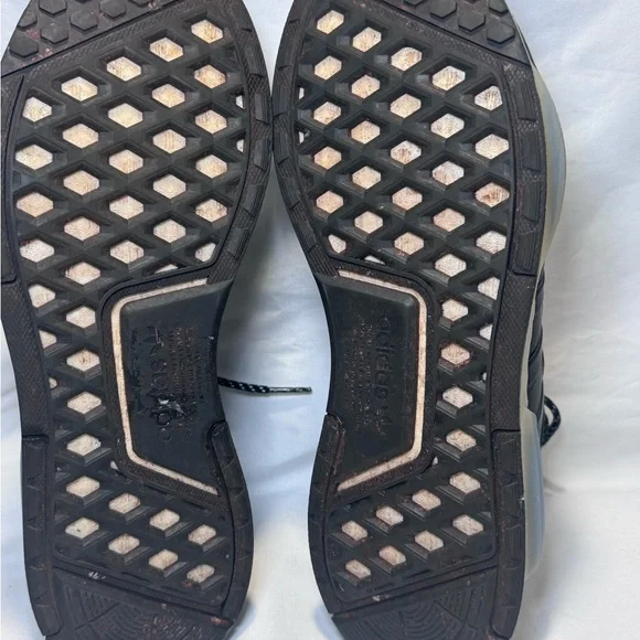 Could use a little cleaning to remove the clay from the baseball field. Elevate your athleisure and sports style with these ADIDAS ORIGINALS NMD V3 BOOST 3 STRIPE MENS SHOES in size 12. The striped pattern and white colorway with black and blue accents make these sneakers a versatile addition to your wardrobe. The Boost midsole provides exceptional cushioning and energy return, while the Continental rubber outsole offers optimal traction for various activities such as walking, cross training, CrossFit, basketball, bodybuilding, and running.These sneakers are designed for men and are perfect for those who value both style and functionality. The adidas NMD product line is known for its minimalist design and barefoot-like fit, making it a popular choice among athletes and fitness enthusiasts. Whether you´re hitting the gym or going for a jog, these sneakers are sure to provide the comfort and support you need.