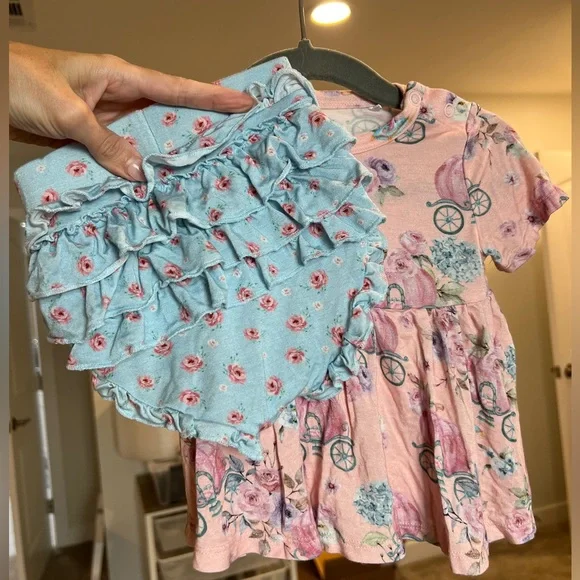Three twirl dresses, one tank top bodysuit, one long sleeve/long pants outfit and one dress & bloomers outfit. All in new or excellent condition except for the yellow twirl, which...