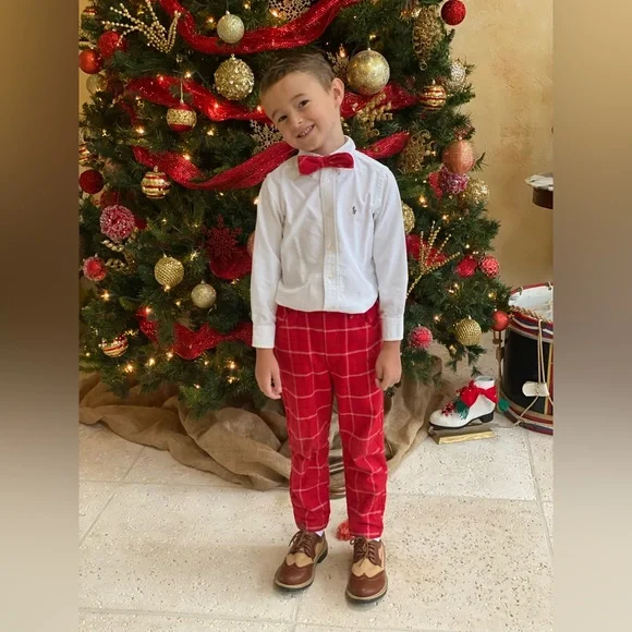 Bella bliss boys cashmere sweater & red plaid pants & bow tie