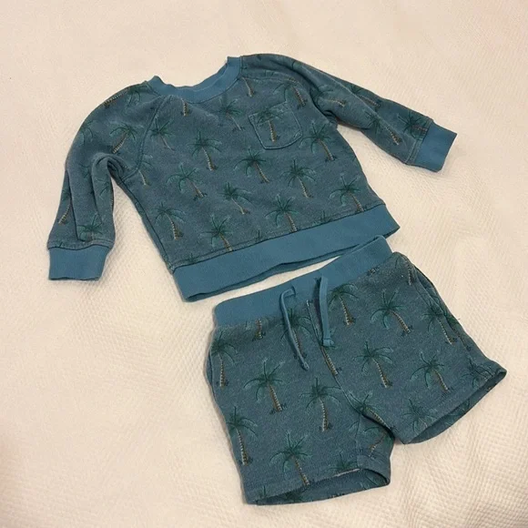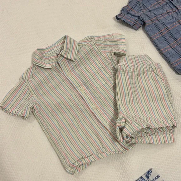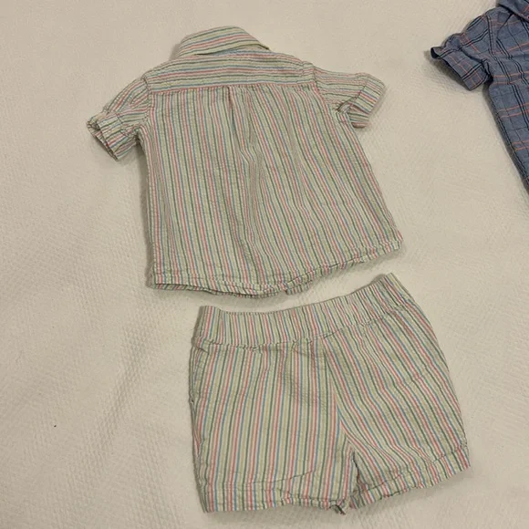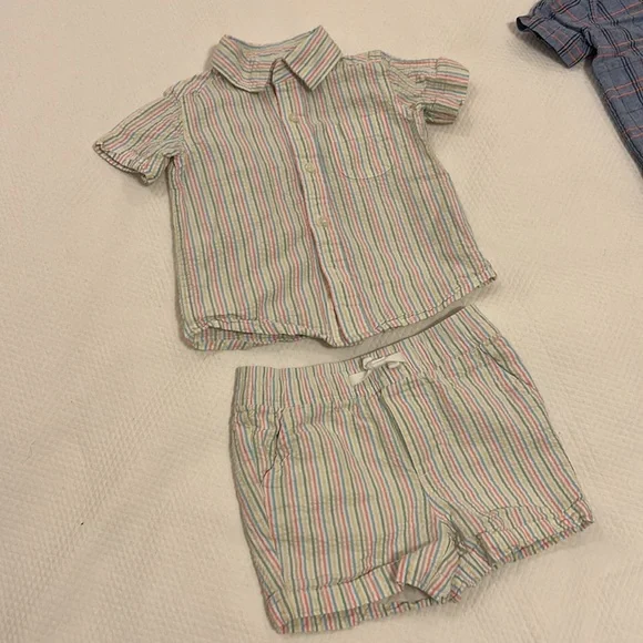 Great condition sets. lightly used 12-18 monthsShorts set 3 of them are elastic drawstring. 1 of them is a zipper as shown in photo.Also, 1 of them is a sweatshirt/short set...