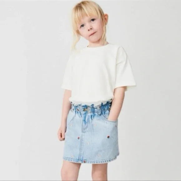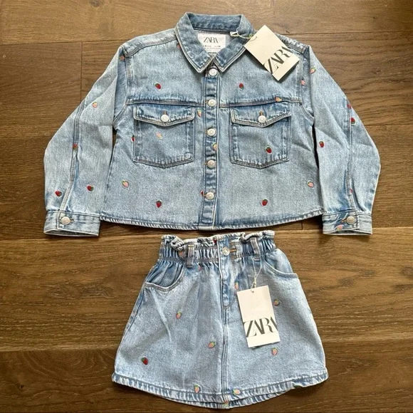 Zara Kids Embroidered Strawberry Denim Overshirt and Skirt Bundle 6 NWT